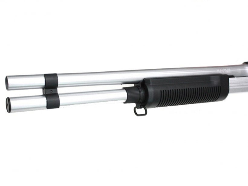 M870ポンプアクションエアコッキングガン!!迫力のあるロングモデル。リアルなレミントンの刻印が入ってこの価格!!<実銃はこんな銃> 同社M31の後継として開発された、レミントン社の代表的なポンプアクション式散弾銃。操作性の高さと頑丈さが評価されて、狩猟はもとより警察機構の制式散弾銃としてよく使用されている。公用モデルのM870Pは、短銃身で装弾チューブを延長した実戦型(総弾数6発)。 ある意味においては、アメリカンポリスのシンボル的な存在であり、今も車輌搭載用の非常用火器としていまも現役で使用されている。 本銃は、元本のM870エキスプレスショットガンから多数のモデルが開発されており(M870P、M870ウイングマスターという具合に)、わが国日本でも、狩猟用として販売されている。 JCG(海上保安庁)の特別警備隊(SSTとは全く別物)に採用されているモデルは、錆びにくいクロームステンレス製のマリーンマグナムと呼ばれるもので、PSIのような海上での臨検を含んだ警備訓練で隊員が携行することがよくある。