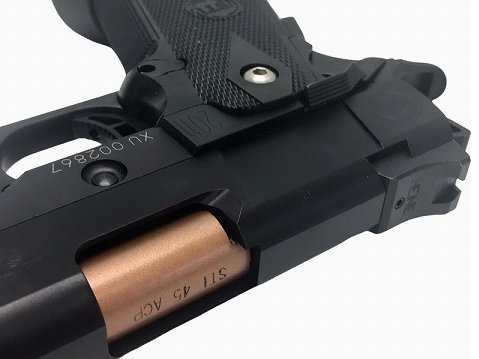 STI社の新型コンプや、茶褐色のチタンコーティングバレルを再現し、軽量ポーテッドスライドによる、かつてない