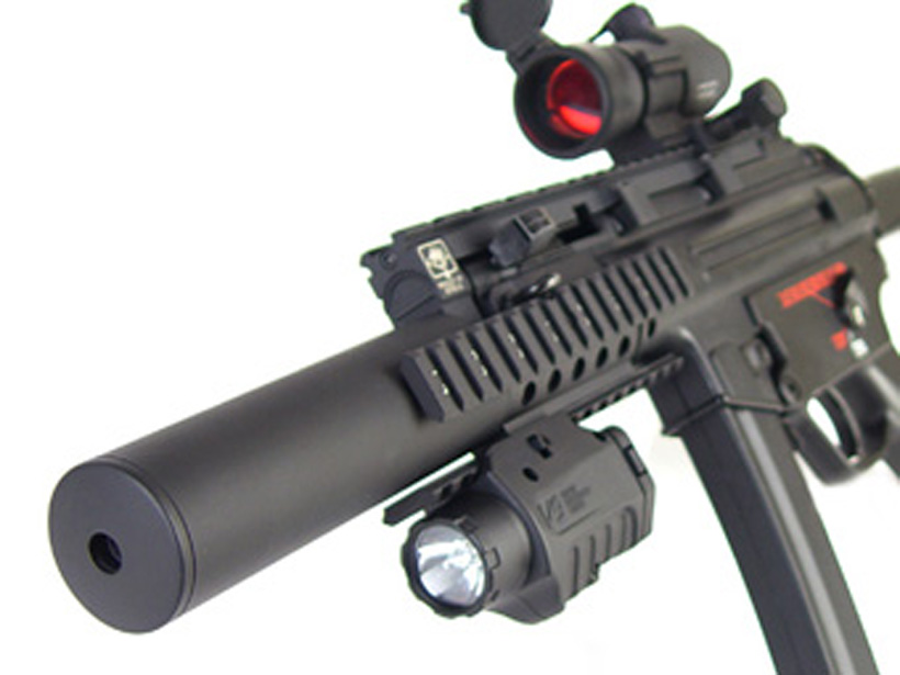 特殊作戦用の消音サブマシンガンMP5SDシリーズ。その特徴であるサプレッサーをリアルに再現!!新開発PSC構造により大型サプレッサー並みの消音力を実現!!!