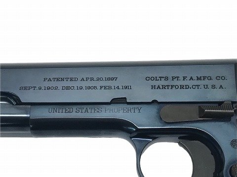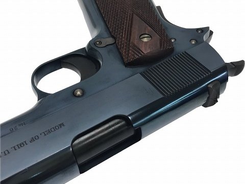 [WA] コルト 1911 アーリー ブルースチールカスタム ガスブローバック 【専用ガンスタンド/アルミ製ガンケース付】 (中古) 製品詳細画像 形成時のコーティングムラが少し先にありますがその他は美品。