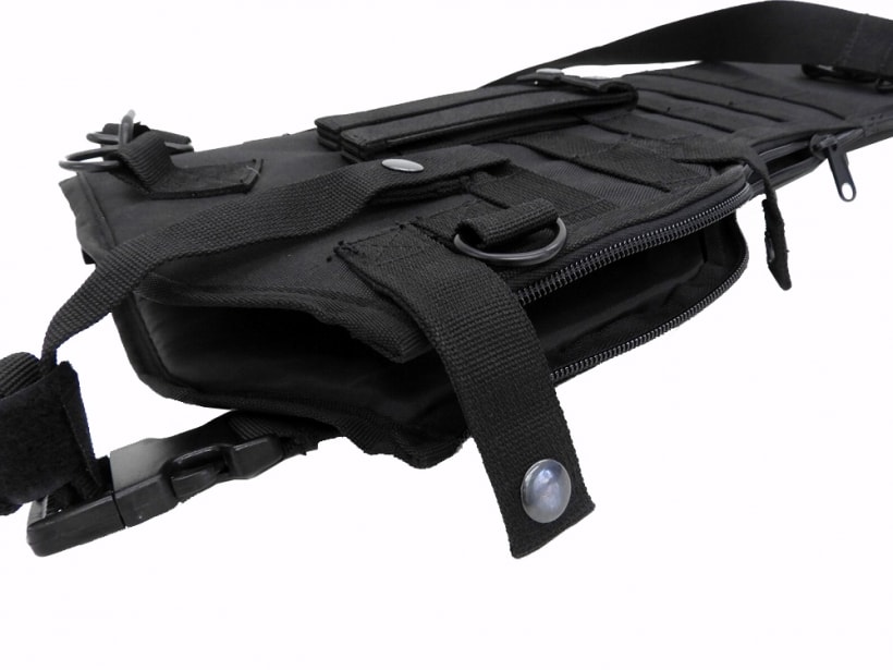 ROTHCO(ロスコ)のタクティカルライフルスキャバード。ライフルを刀のように収納するソフトケースです。銃口側のバックルを外すことで折りたたまれていた先端部を伸ばすことが出来、長めのバレルを持つライフルにも対応。