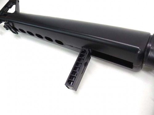 [東京マルイ] コルト M16A1 エアコッキングライフル (中古) 製品参考画像2 ハンドガード下のレピーターハンドルでのコッキングが可能です。