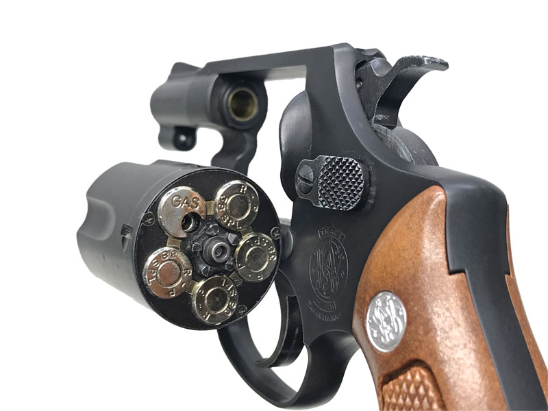 実銃のM36は、装弾数が5発と通常のリボルバーの6発より1発少ないが、これによって小型軽量化が図られたチーフスズペシャル。小型のKフレームをHWで製作したことで、カタログ数値以上の重みを感じられる。
