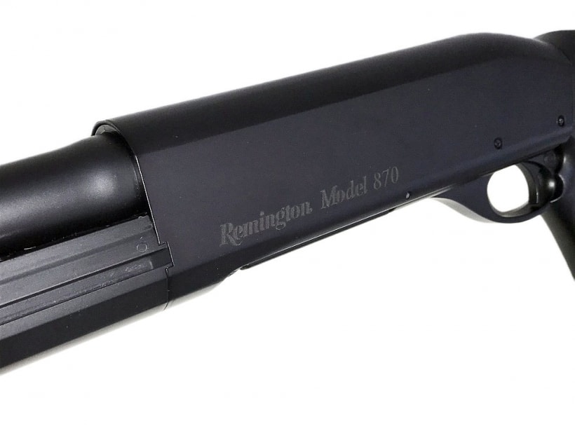 同社M31の後継として開発された、レミントン社の代表的なポンプアクション式散弾銃。操作性の高さと頑丈さが評価されて、狩猟はもとより警察機構の制式散弾銃としてよく使用されている。公用モデルのM870Pは、短銃身で装弾チューブを延長した実戦型(総弾数6発)。 ある意味においては、アメリカンポリスのシンボル的な存在であり、今も車輌搭載用の非常用火器としていまも現役で使用されている。 本銃は、元本のM870エキスプレスショットガンから多数のモデルが開発されており(M870P、M870ウイングマスターという具合に)、わが国日本でも、狩猟用として販売されている。 JCG(海上保安庁)の特別警備隊(SSTとは全く別物)に採用されているモデルは、錆びにくいクロームステンレス製のマリーンマグナムと呼ばれるもので、PSIのような海上での臨検を含んだ警備訓練で隊員が携行することがよくある。