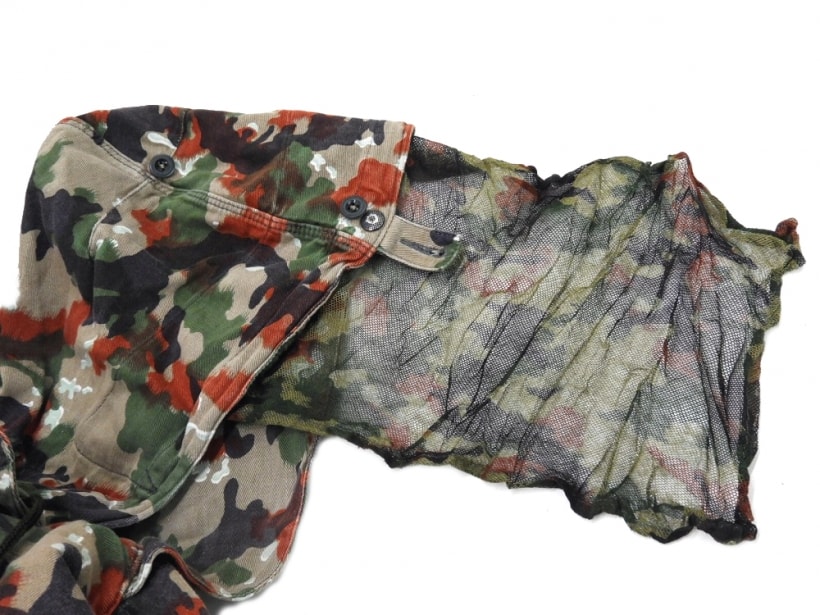 [スイス軍実物]アルペンカモ コンバットジャケット パーカ 8ポケット 迷彩 size52 L (中古) 製品詳細画像1 フードに収納可能なメッシュのベール