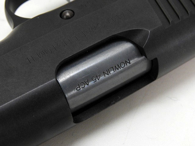 [WA] LAPD SWAT カスタムII /CB カーボンブラックHW スライド開き メタルチェンバーカスタム (訳あり) 製品詳細画像 NOWLIN45ACP刻印メタルチェンバーカバー
