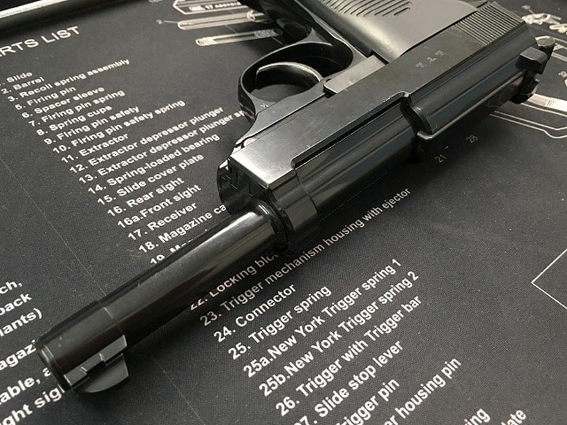 ハンドガンの場合は全体を金属性とする組み換え、エアソフトガンの場合は射出エネルギー0.98J以上にする改造を行うと銃刀法違反となります。HFC134a仕様のガスガンにCO2用マガジンを組み込む、スライドを金属製の物に差し替える等、簡易な改造でも罪に問われる可能性がございますので、絶対にお止めください。