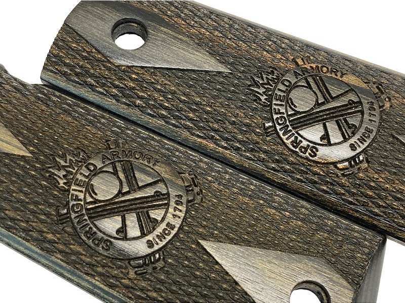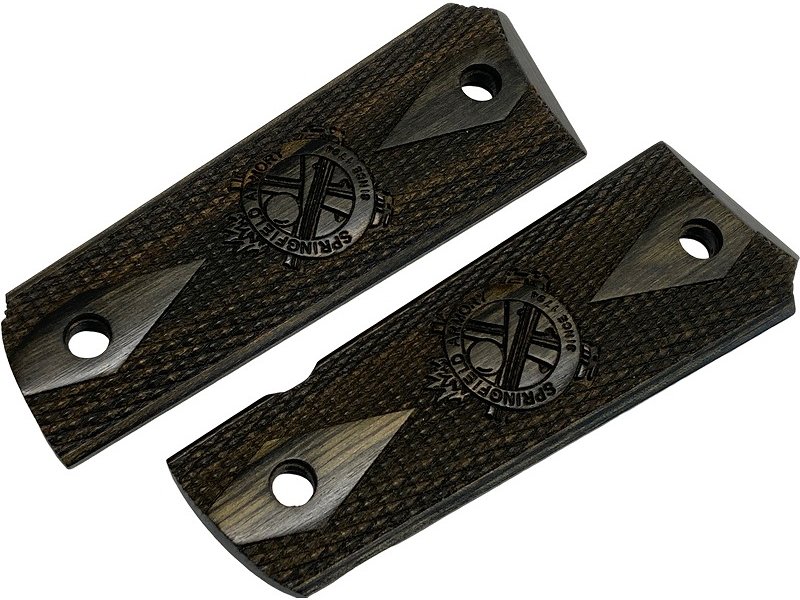 アルタモント(USA)製 スプリングフィールドGM用。 M1911系フルサイズに対応。キャノンクロスロゴ入りのダイヤチェッカー木製グリップ。