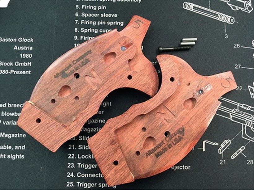 [アルタモント] S&W Nフレーム RDメダル付き O/S スムース 木製グリップ 赤/ローズ (中古) 製品詳細画像 裏面。グリップスクリュー等も付属します。