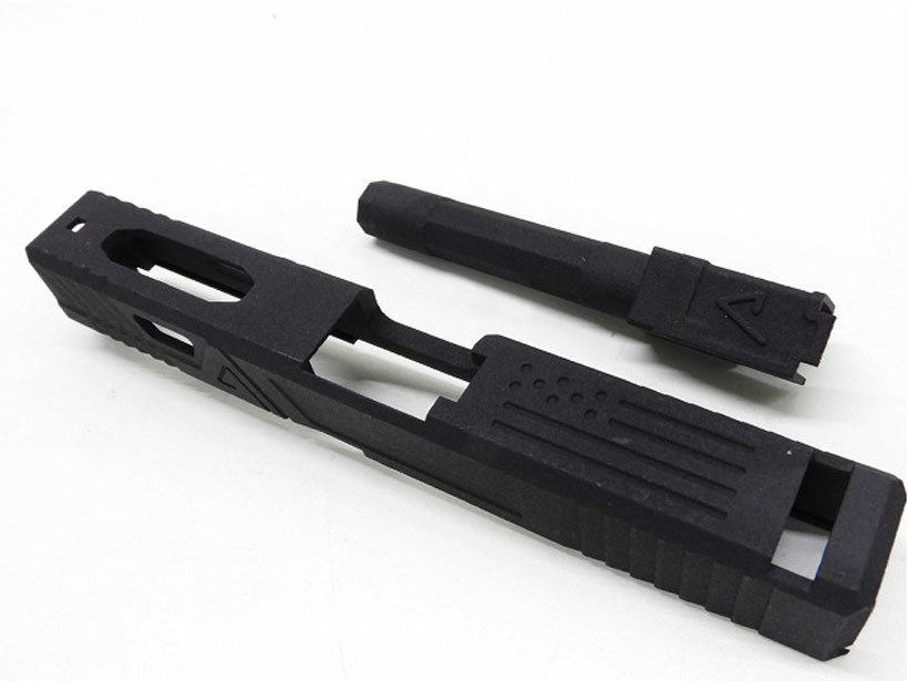 ポリアミド12と呼ばれる粉末のナイロン素材を使用し3Dプリンターで作成した素材のため 非金属製でサバゲフィールドやレンジなどでも使用可能!もちろん軽量!