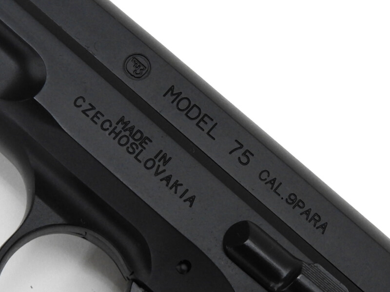 FN ハイパワーやシグ P210を参考に、1975年にチェコスロバキアの国営銃器工場が開発した自動拳銃。「CZ」の名は、esk Zbrojovka/チェスカー・ゾブロヨフカ(チェコスロヴァキア国営銃器工廠)の頭文字から。 実戦向きなコック&ロック*1可能なセイフティや、命中精度の高さもさる事ながら、人間工学を考慮したグリップは『まるで手に吸い付くよう』と評された。特にアメリカでは、シューティング競技の権威であるジェフ・クーパーがコルト.45を選ばず、本銃に「(もしこれが.45ACPであったなら)世界最高のコンバットオートである」という高い評価を与えた事で、世界有数の名銃として人気が高騰した。 CZ75の前期モデルは、非常に硬いスチールからの削り出しによる、高精度な作りであった。また旧共産圏の銃であるため西側での流通量が少なかったことと、仕上げの美しさから、現在もコレクターの間では高値で取り引きされている。 ただ、後期型と比べて特段優れているわけではないとも言われている。硬い素材はいっぽうで弾性に欠け、スライド前部が薄くクリアランスもタイトだったため、衝撃による僅かな歪みも復元されにくく、塵芥の侵入で作動に不具合を起こす問題があった。 また削り出し加工ゆえの生産効率の低さもあって、後期モデルからは生産性の高いロストワックス製法(インベスティメントキャスト)が採り入れられた。さらにフレームは噛み合わせが前方に延長され、ハンマーにハーフコックポジションが追加された。 しかし、生産の省力化によって仕上げが荒れたことから、後期モデルはマニアの間では評価を落としてしまっている。ただ、一般市場での反応は上々だったようで、CZ社は民営化後も後期モデルを基本に現行モデルを開発している。後期モデルは鉄の品質が落とされたため、強度を保つためにフレームが延長されたという説もあるが、真偽は怪しいようだ。[MEDIA GUNDATABASE]