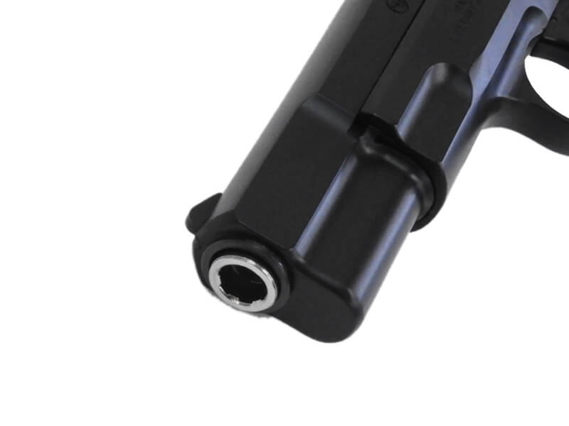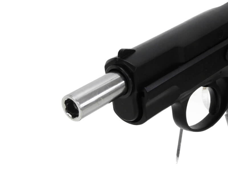ハンドガンの場合は全体を金属性とする組み換え、エアソフトガンの場合は射出エネルギー0.98J以上にする改造を行うと銃刀法違反となります。HFC134a仕様のガスガンにCO2用マガジンを組み込む、スライドを金属製の物に差し替える等、簡易な改造でも罪に問われる可能性がございますので、絶対にお止めください。