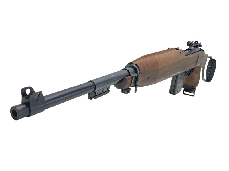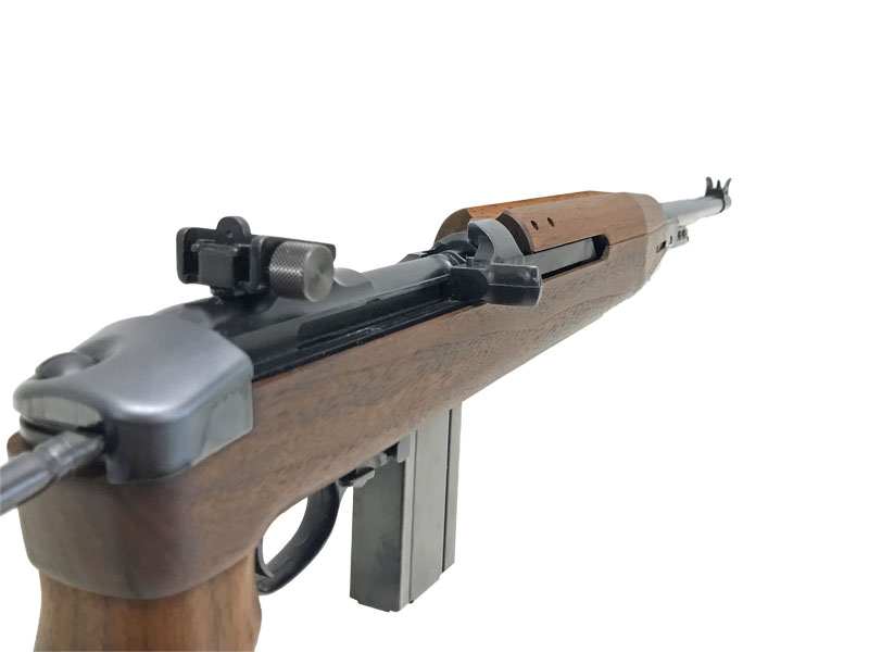 1941年にアメリカで開発された自動小銃。M1カービンの特徴として、ボルトの閉鎖機構はM1ガーランドと同じく回転ボルト閉鎖を採用していたが、ガス圧でボルトを解放する機構には短ガス・ピストン式(玉突き式)を採用していた。