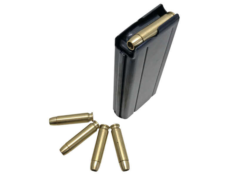 (この後、短ガス・ピストン式は多くのアサルトライフルの設計に取り入れられ、AR-18、89式、G36といったモデルに採用されている)M1カービンの使用弾薬である.30カービン弾は、当時の標準的小銃弾に比して遥かに腔圧が低いという特性を持っていたため、これを活かした非常に短いガスピストンが用いられている。
