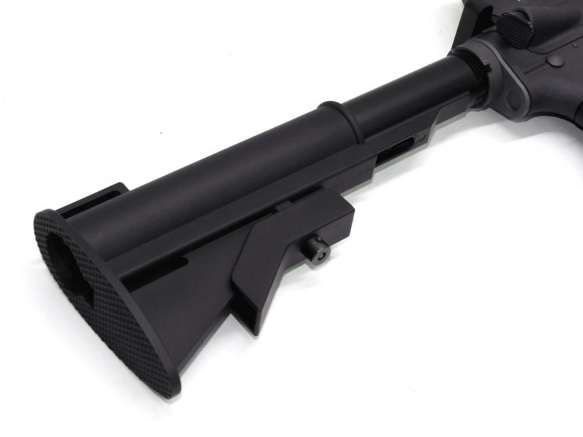 上下レシーバーからアウターバレルまでメタルパーツとなっており、外観上の特徴であるハイダーはスチール製で質感は文句がない。M4などに比べて細いハンドガードはナイロンファイバー製で、これも安っぽい樹脂の感じはなく、硬質感のある素材で作られていて高級感がある。無刻印となっているが、社外製のリアル刻印レシーバーを探すこともできるしカスタムベースとしても最適だろう。実射の方はさすがのWE-Tech、バキンバキンと力強くブローバックして楽しませてくれる。