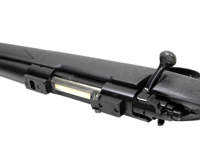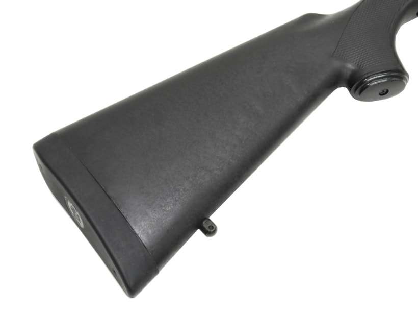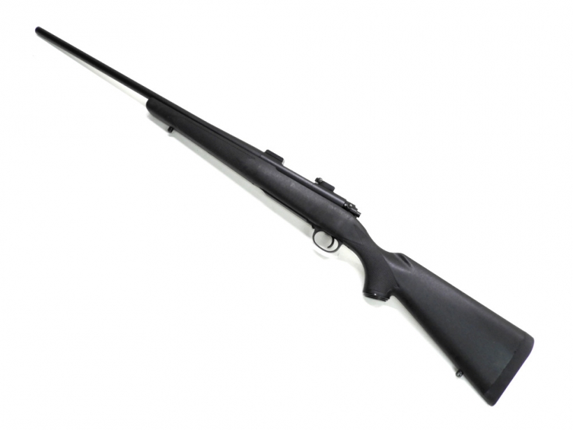 トック形状はマクミランタイプで材質はグラスファイバー入り樹脂製、機関部は黒クロームメッキのマット仕上げ、アルミ製テーパードバレルは黒アルマイト・マット仕上げ、スコープマウントベースはアルミ削りだしの万能型レールタイプ黒アルマイト・マット仕上げと、今ポピュラーとなったマット(つや消し)タイプのこのモデルは、現在FN社で発売されているM70を忠実に再現しています。造りはPre’64の豪華さにひけをとらないプロ受けする機能美を備えた逸品といえます。
