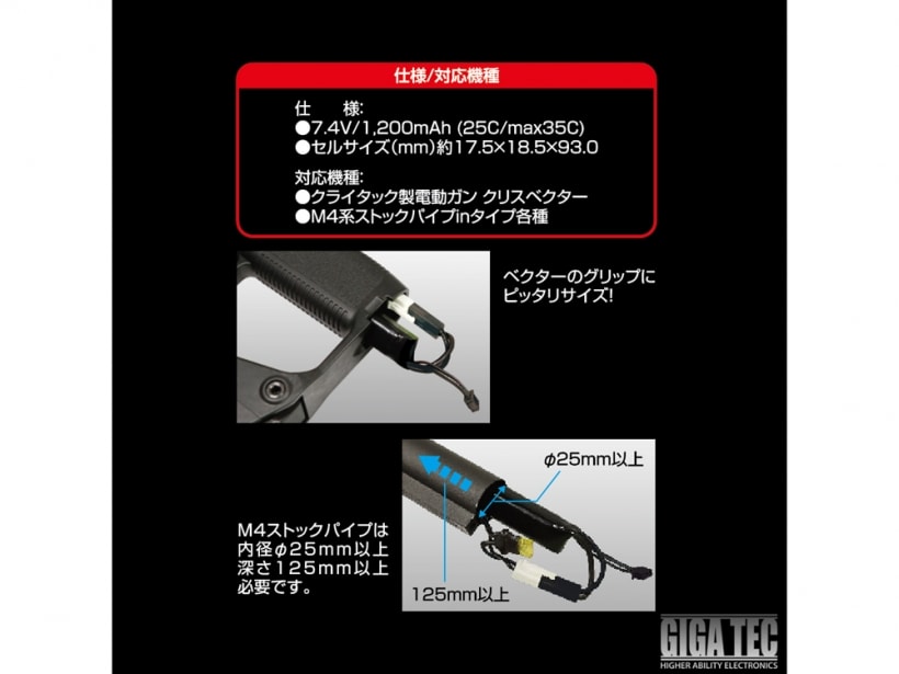 ※ミニSバッテリーは東京マルイ製 8.4Vニッケル水素1300mAhを使用するモデルです。