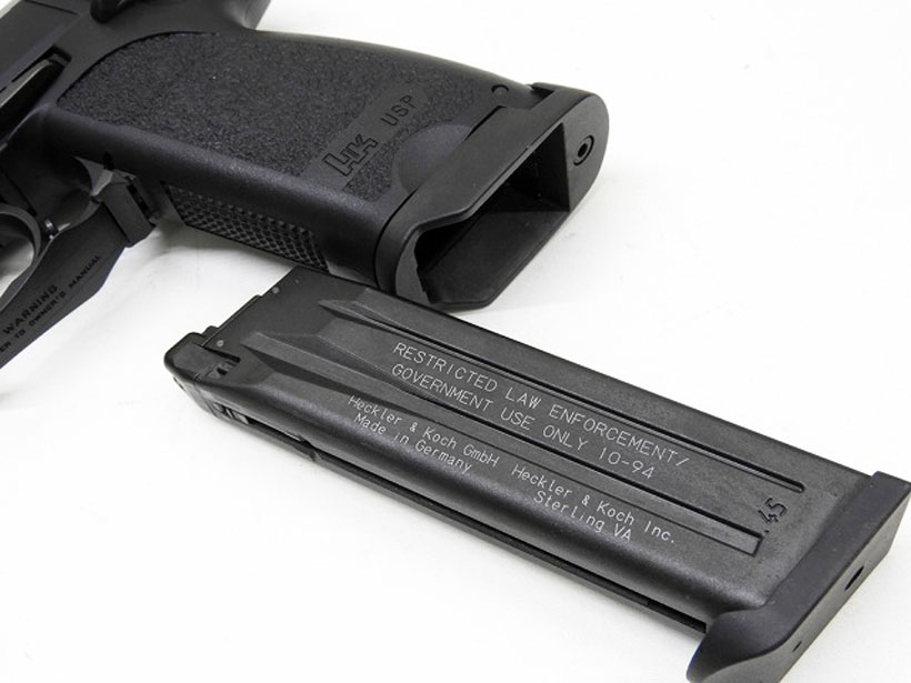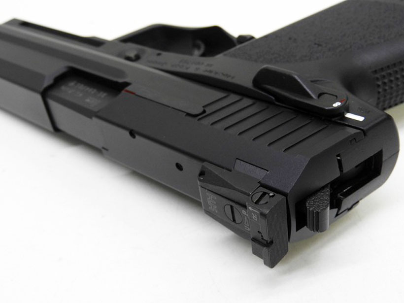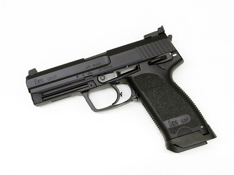 USP(Universal Selfloading Pistol)は、H&K社がP7のパワーファクター上の限界と、それまでにも存在した銃器における失敗(革新的機構にのみ目を向けていた点)の反省、そしてアメリカ市場を想定して、1993年に開発された大口径の自動拳銃である。  アメリカ市場を意識した外見であるが、実際には9mm弾、特に軍用の強装弾薬である9mmx19弾以上の大口径への展開を行うための足がかりである。そのため、標準の9mmx19弾以外にも.40S&W弾仕様、そしてアメリカ主流の.45ACP弾仕様モデルが用意されている。  また、コントロール関係スイッチの機能の別として10種類近いメカニズムバリアントが存在する。