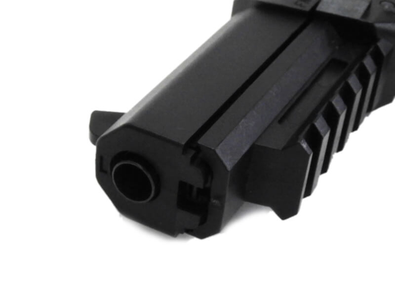 ファイブセブンの特徴としてスライド外側がプラスチックに覆われている。 マウントレイルを標準装備した実戦的なスタイルだ。