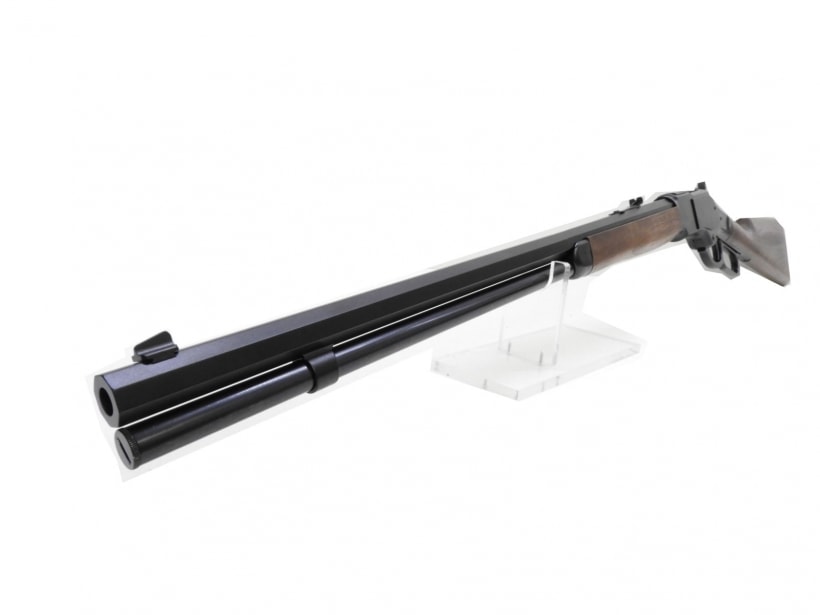 スペアマガジン一本標準付属!木製ハンドガード部分までスラリと伸びるオクタゴンバレル、高級感のあるクロームメッキのボディに高級木製ストックは鳥肌物です。