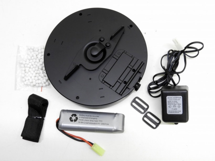 ドラムマガジン標準搭載のトンプソンM1A1電動ガン。ウッド調のストックも含め全体が樹脂製でありながら、その動作は意外なほどパワフル。軽量な分取り回しやすく、バッテリーと充電器もセットになったお求めやすいモデル。