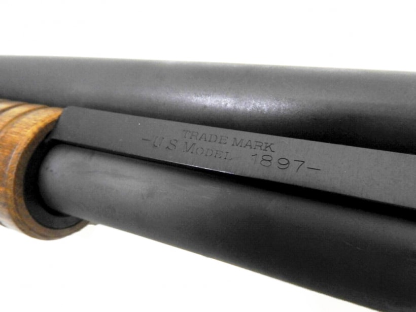 ジョン・ブローニング設計によるポンプアクション式散弾銃。同じくブローニングが設計したM1893の問題点を改善したもので、元がレバーアクション式だった物をポンプアクションに改めており、後のモデルと異なりハンマーが露出しているのが特徴。そのためレシーバーの全長が若干短く、排莢孔のカバーを設けるスペースもないため、中のメカがのぞけるようになっている。また、後のイサカ M37の様に、トリガー引きっぱなしでフォアエンドを前後させることで、連続射撃が可能。レピーター(3発以上の装弾数を持つ銃の総称)散弾銃の元祖と云われ、民間の他にも軍隊、警察などで使用された。特にバックショット(鹿撃ち弾)を装填したM1897は、19世紀末の米比戦争で、トランス状態のモロ族戦士との接近戦で効果をあげ、第一次大戦では、塹壕戦の狭所戦闘にて凄まじいまでの有効性と残虐性を示し、『トレンチガン(塹壕銃)』の異名を得るほどまでに活躍。その威力は、その猛威にさらされた当時のドイツによって、「ハーグ協定に違反している」と直訴されるほどだった。