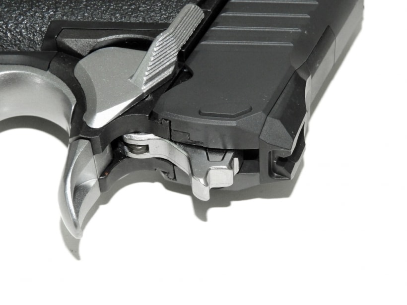 新型リコイルスプリングガイド&スライドストップレバーの組み合わせによりスライドストロークを2mm短縮化。シャープな撃ち味に加えて、より安定したブローバックアクションを実現した。