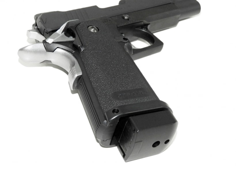 ハンドガンの場合は全体を金属性とする組み換え、エアソフトガンの場合は射出エネルギー0.98J以上にする改造を行うと銃刀法違反となります。HFC134a仕様のガスガンにCO2用マガジンを組み込む、スライドを金属製の物に差し替える等、簡易な改造でも罪に問われる可能性がございますので、絶対にお止めください。