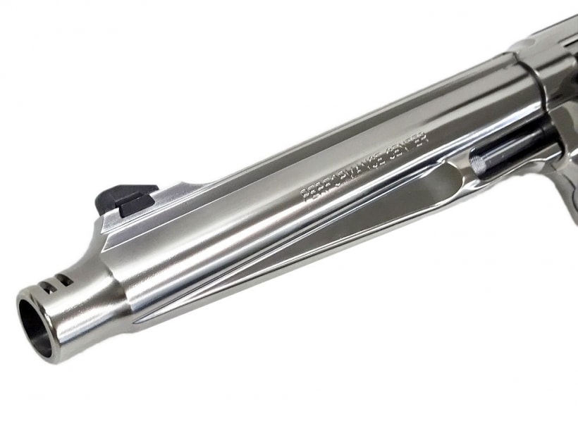 とても見栄えのするリボルバーです。リボルバーは様々なメーカーから出ていますが、こういった斬新なカスタムを老舗のS&W自らが手掛けているというところにものづくりへの情熱を感じますね。