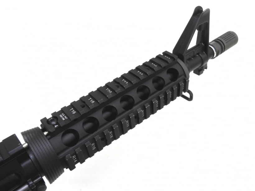 ナンバリングが再現され、アルミ製ヒートシールドが内蔵されたアルミ製ハンドガードをはじめ、LMTタイプQDリアサイト、QDスリングベルが付属したクレーンタイプストック、ナイツタイプのフラッシュハイダー等々ハイグレードパーツを多数搭載!米海軍特殊部隊SEALsで使用される特殊任務向けの短銃身モデルを、完全モデルアップ!短く取り回しに優れる、10.5インチのCQBサイズアウターバレルを搭載!