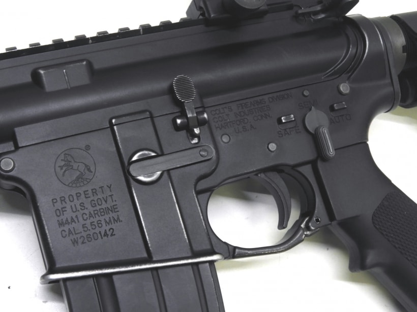 動作、各部の再現度ともに突出したクオリティをもつWAのM4シリーズ。さらなるリアリティを求めてメタルフレーム化するには海外メーカー製の対応フレームを入手して組み込む必要があったが、遂にWAが満を持して送り出したのはファクトリーメイドの「フルメタルカスタム」M4。チャージングハンドルを引いて手を離すという動作だけでも従来の強化樹脂製品とは一線を画す操作感が味わえる。コッキングはとてもスムーズで引っ掛かりのようなものはまったくなく、フレームとボルトキャリアが擦れる感触と音は金属ならではのものであり、金属製モデルガンを触った時のような圧倒的硬質感がある。冷たい金属同士が触れあったりぶつかりあう動作音はまさに至高の感覚で、本当に実銃に触れているかのような気持ちになり扱いもいつもより数段慎重になる。自ずとそういう気持ちにさせるほど完成度の高いガンだ。リコイルの衝撃はすでにご存じの通りで、バキャッ、バキャッ、と頬と肩の奥深くまで響くほどのショックがある。WAM4はガスブロとしては高価な部類ではあるが、ミリタリーファンなら必ず一度は触れておくべきガンだろう。