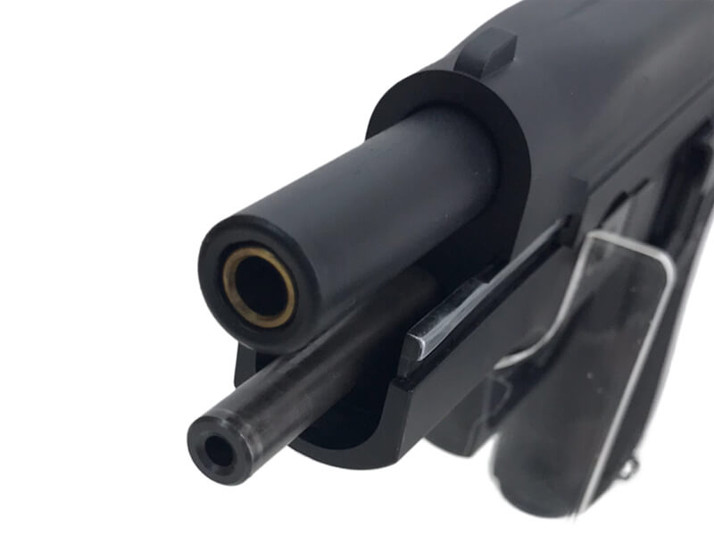 ハンドガンの場合は全体を金属性とする組み換え、エアソフトガンの場合は射出エネルギー0.98J以上にする改造を行うと銃刀法違反となります。HFC134a仕様のガスガンにCO2用マガジンを組み込む、スライドを金属製の物に差し替える等、簡易な改造でも罪に問われる可能性がございますので、絶対にお止めください。