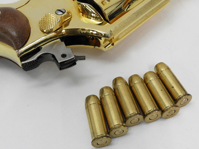 コクサイのモデルガン、ミリタリー&ポリス。24金フルメッキ処理の2インチオールドモデル。