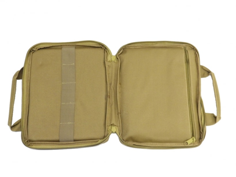 内部のファスナー部を開けていただくと、アクセサリーもしくは中型のハンドガン等を2丁収納していただく時に