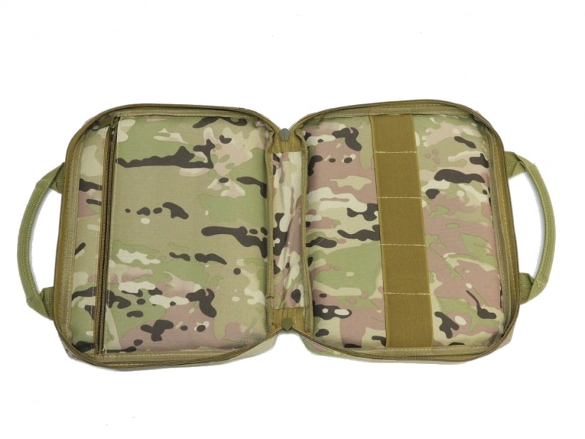 内部のファスナー部を開けていただくと、アクセサリーもしくは中型のハンドガン等を2丁収納していただく時に