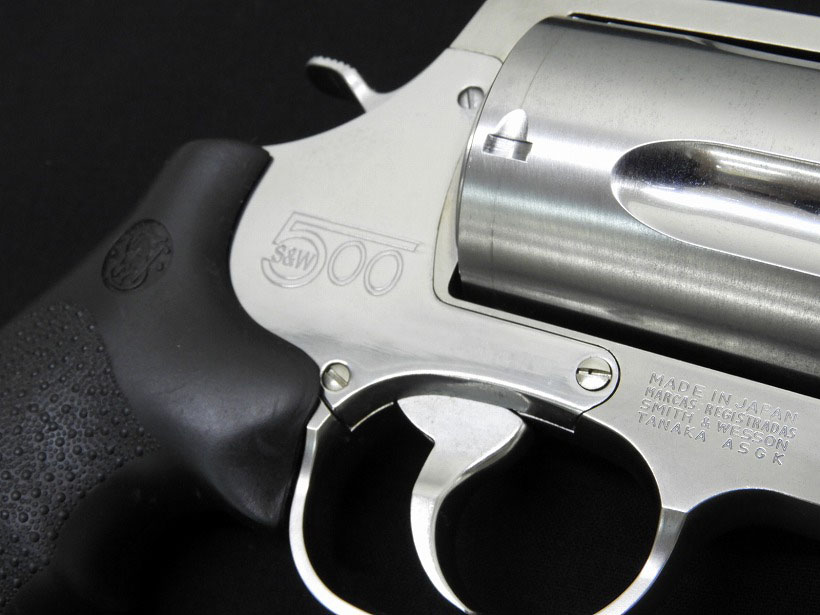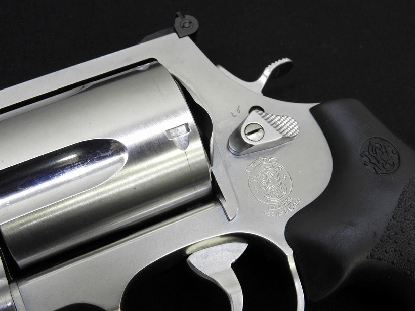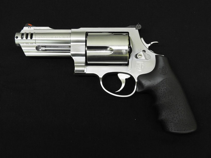 S&W社が2003年に発表した超大型回転式拳銃。市販品としては最強の拳銃弾「.500S&W」を使用しマズルエネルギーは.44Magnum弾の3倍(S&W社比)を誇る。そして膨大な反動に耐えうるため、フレームには他の大型拳銃を小型拳銃と見間違わせる程の、超大型Xフレームを新規開発し、その重量は拳銃と呼ぶには疑問を抱くほどである。 その強烈なインパクトは、一丁あたり1千ドル以上の高値にも拘らず、注文が全米各地から殺到し、発売当初は需要に供給が追いつかなくなる大好評を得て、S&Wの名を再び世に知らしめた。[MEDIAGUN DATABASE]