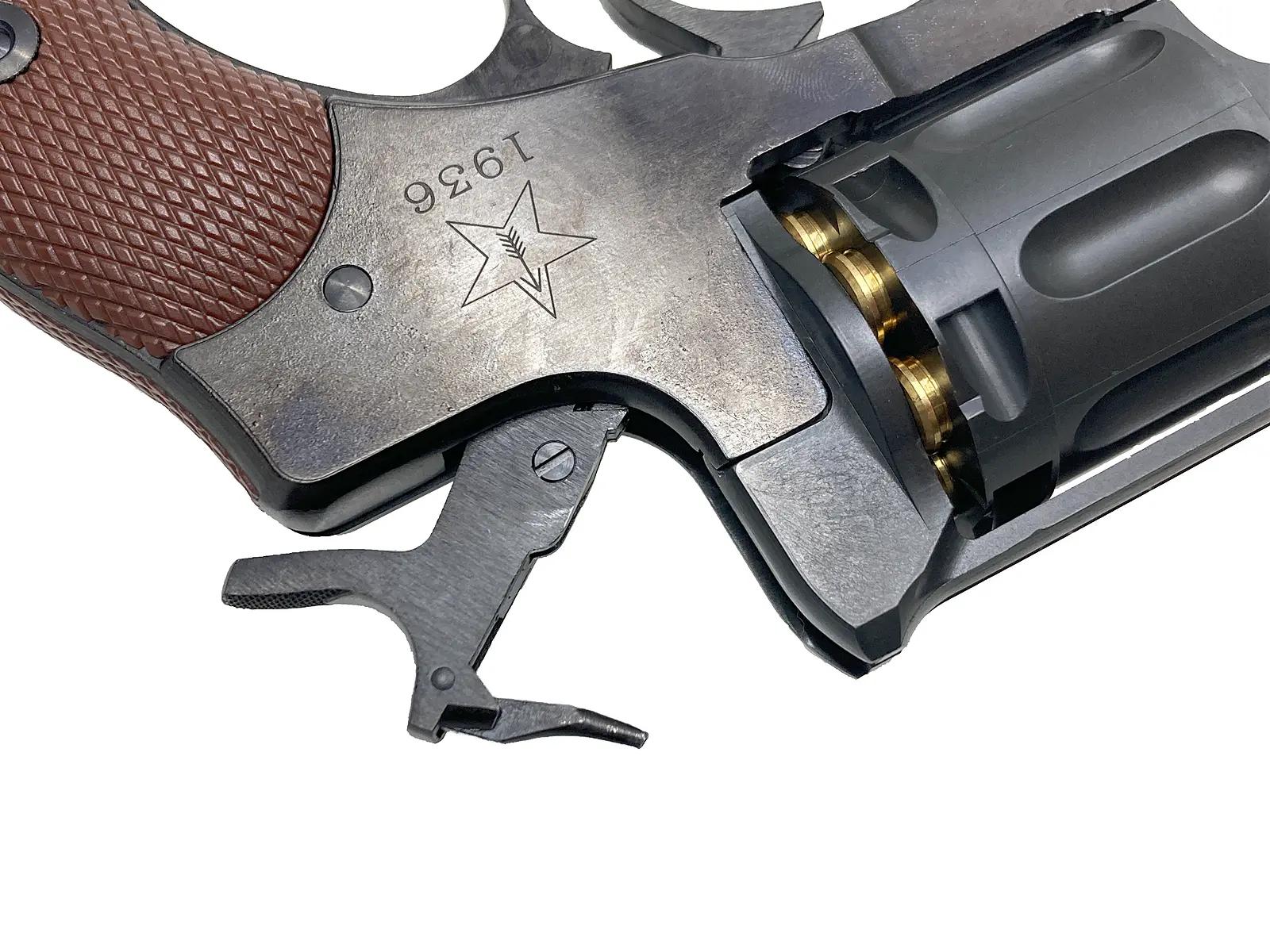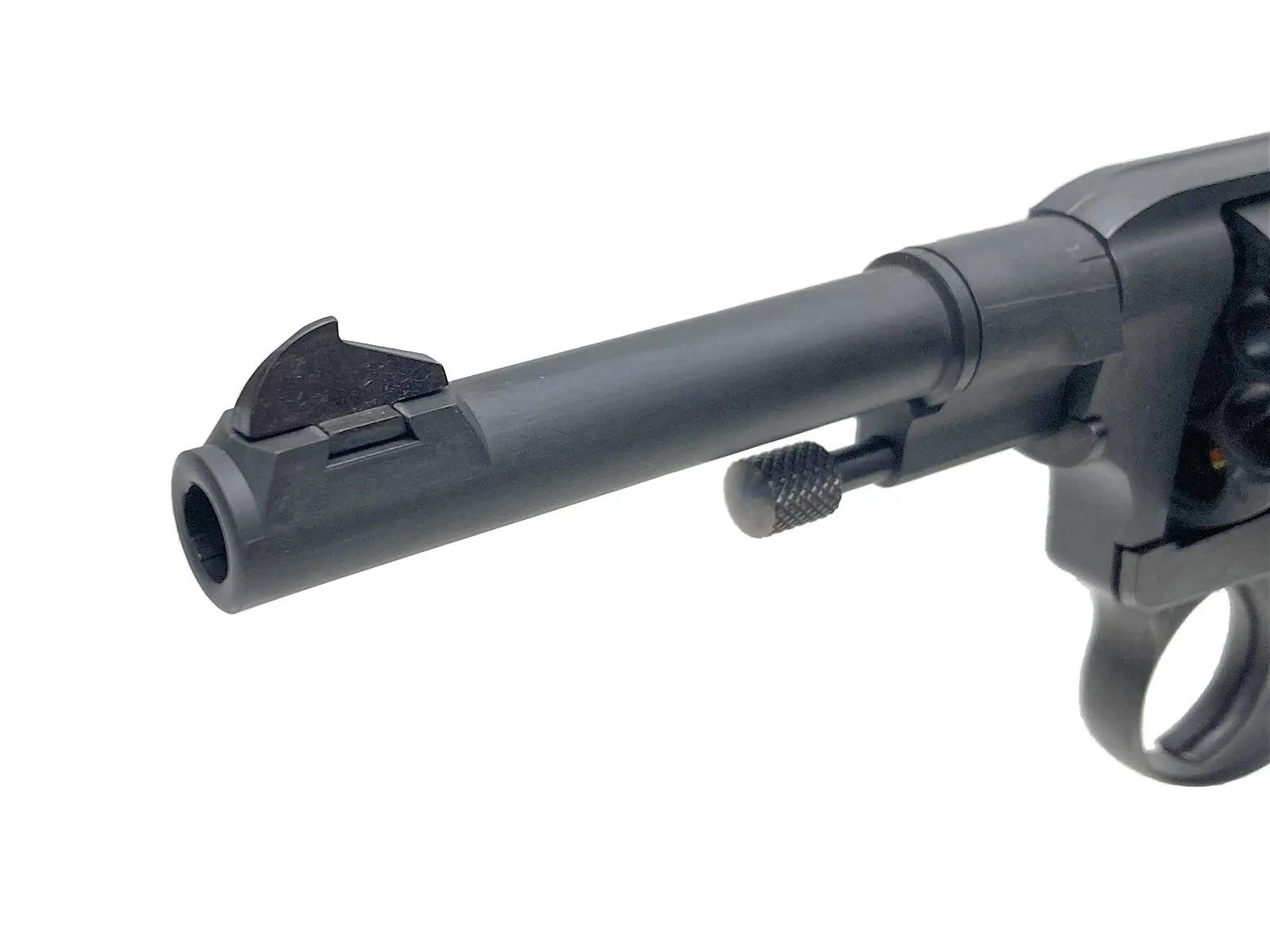 ロシア帝国を支えた伝説的な軍用銃が、ハートフォードの情熱により精密なモデルガンとして現代に蘇った。最大の見どころは、気密性を高めるシリンダー前進機構を完璧に再現している点だ。ダブルキャップ火薬仕様による迫力の発火動作と、独特の7連発シリンダーが織りなす操作感は唯一無二。歴史的背景とメカニカルな魅力が凝縮された、まさにファン待望の意欲作と評価する。