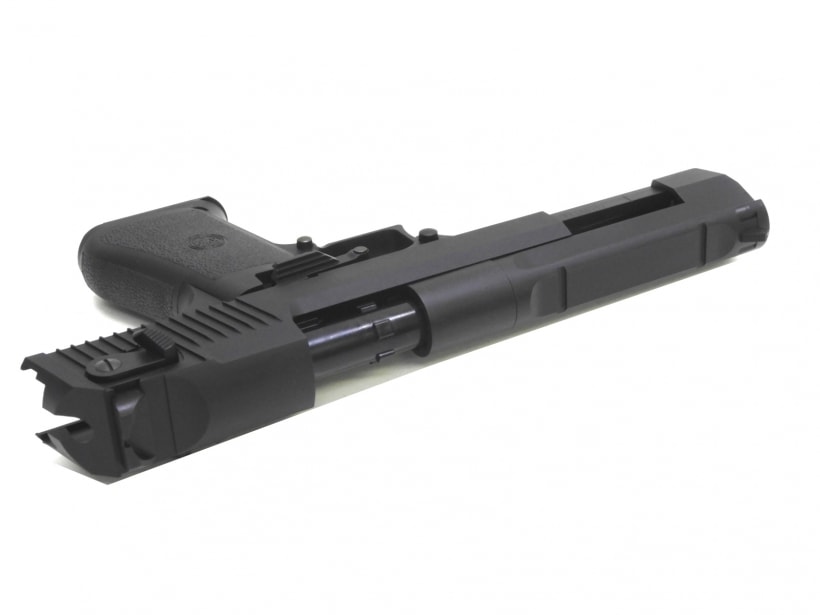 ハンドガンの場合は全体を金属性とする組み換え、エアソフトガンの場合は射出エネルギー0.98J以上にする改造を行うと銃刀法違反となります。HFC134a仕様のガスガンにCO2用マガジンを組み込む、スライドを金属製の物に差し替える等、簡易な改造でも罪に問われる可能性がございますので、絶対にお止めください。