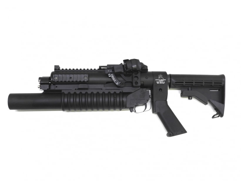 M203を単体で使用出来るようにした製品。M4タイプの6ポジションストックを備えており、拡張性の高い20mmレールも3面ついている。