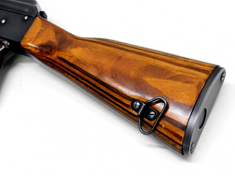 GHKのAKMガスブローバックモデル。外装はLCTから提供を受けながらフルメタル・リアルウッドとして完成し、動作も外観も高いクオリティに仕上がっている。※パッケージ、内容物など写真と異なる場合があります。