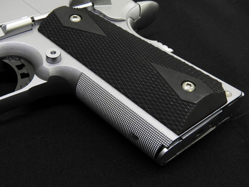 ハンドガンの場合は全体を金属性とする組み換え、エアソフトガンの場合は射出エネルギー0.98J以上にする改造を行うと銃刀法違反となります。HFC134a仕様のガスガンにCO2用マガジンを組み込む、スライドを金属製の物に差し替える等、簡易な改造でも罪に問われる可能性がございますので、絶対にお止めください。