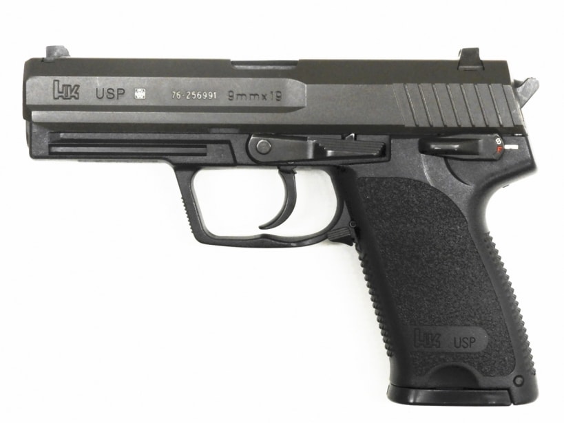 USP(Universal Selfloading Pistol)は、H&K社がP7のパワーファクター上の限界と、それまでにも存在した銃器における失敗(革新的機構にのみ目を向けていた点)の反省、そしてアメリカ市場を想定して、1993年に開発された大口径の自動拳銃である。  アメリカ市場を意識した外見であるが、実際には9mm弾、特に軍用の強装弾薬である9mmx19弾以上の大口径への展開を行うための足がかりである。そのため、標準の9mmx19弾以外にも.40S&W弾仕様、そしてアメリカ主流の.45ACP弾仕様モデルが用意されている。 また、コントロール関係スイッチの機能の別として10種類近いメカニズムバリアントが存在する。