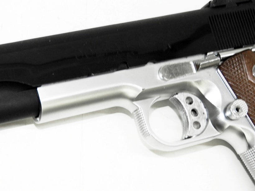 ハンドガンの場合は全体を金属性とする組み換え、エアソフトガンの場合は射出エネルギー0.98J以上にする改造を行うと銃刀法違反となります。HFC134a仕様のガスガンにCO2用マガジンを組み込む、スライドを金属製の物に差し替える等、簡易な改造でも罪に問われる可能性がございますので、絶対にお止めください。