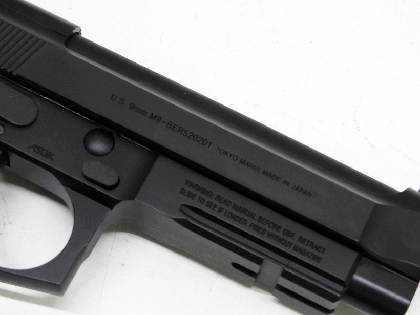 :スライドとフレームは、それぞれの素材の違いからくる色の差を本物同様に再現しました。また、内部に配置した金属ウェイトの重量によって、本物と同じ961gという重量を実現。ズッシリとした重さがM9A1らしさを演出します。