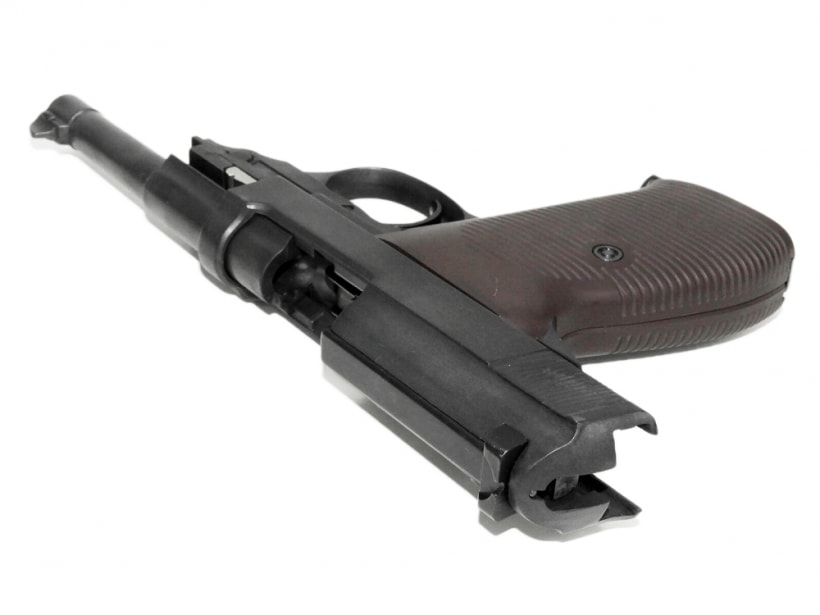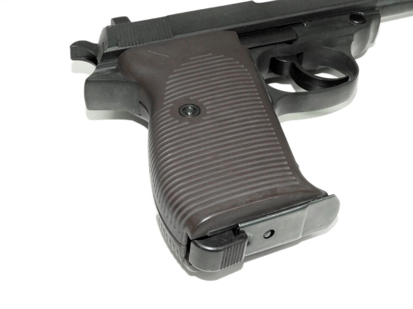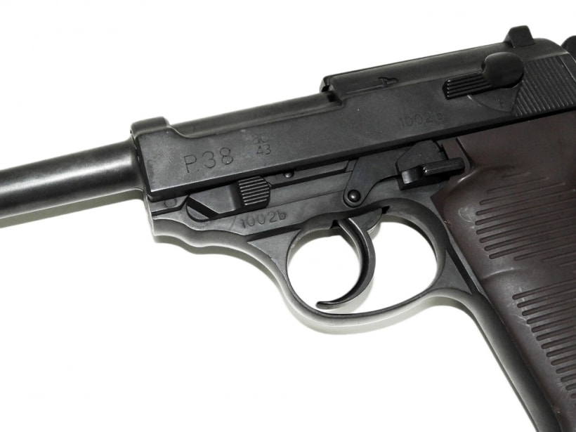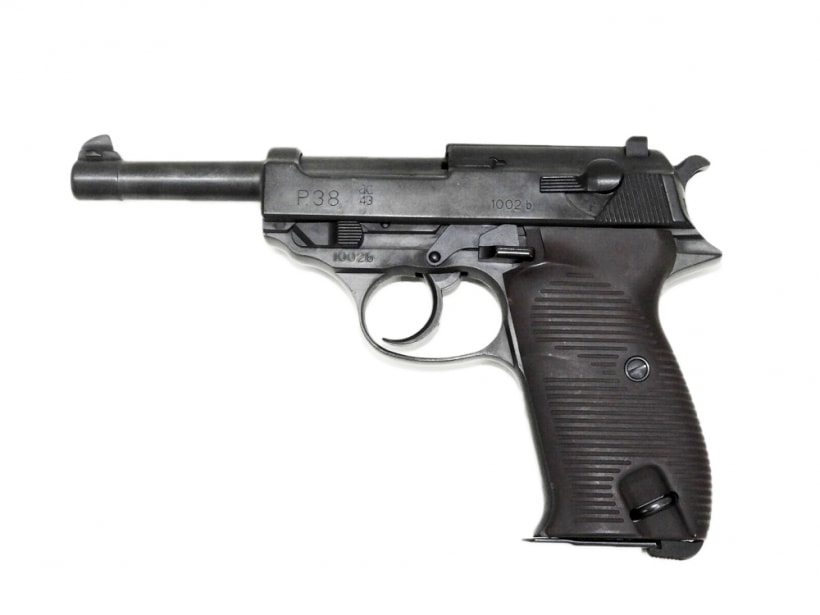 1938年にドイツ陸軍が制式採用した自動拳銃。1971年から放映された人気アニメ『ルパン三世』の主人公ルパン三世の愛銃として登場し、テーマソングでもその名が歌われた「ワルサーP38」は、日本で最も一般に知られている拳銃であろう。  第二次大戦直前、それまでドイツ陸軍はルガー P08を制式拳銃として使用していたが、作りが精巧なため生産コストが高く、戦場の様な過酷な環境で使うには耐久性に難があった。そこで来るべき大戦に備えるべく、ワルサー社に安価で耐久性に優れた新型拳銃の開発を依頼。そして完成したHP(Heeres Pistolen)を、P38として制式採用した。  最大の特徴はPPから継承したダブルアクション機構で、大型軍用オートマチックとしては世界初の試みだった。加えてデコッキング機構を組み込んだマニュアルセフティやAFPBなどを組み込み、安全性と即応性を飛躍的に高めている。  作動方式はAPから受け継いだショートリコイル&プロップアップ。銃身とスライドはコルト ガバメントなどのティルトバレル式(ブラウニング式)ではなく、独立したロッキングラグを用いる。この方式は銃身が水平に後退するのでぶれが少ないだけでなく、スライド内部にロッキングラグを削り込む必要がないため、生産性にも優れている。  一方で、銃身は剥き出しでスライドは半分しかなく重心が後方にある為、他の拳銃に比べて銃口の跳ね上がりが大きいとされる。ただし、軍用銃としては水準以上の命中精度だったようだ。また一般的なオートマチックと異なり左側に排莢されるが、一説には自動車(左ハンドル)を運転しながら左手を窓から出して撃てるようにするためと言われている。  ダブルアクション機構などのために部品点数はやや多めだが、基本的なメンテナンスの際は、大きな部品3つ(スライド、フレーム、バレル)に分かれるだけで小さな部品が脱落する心配がない、と整備性も十分考慮されている。