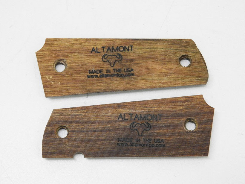 アルタモント製 M1911 ガバメントフルサイズ用 木製グリップ スムース 茶色。