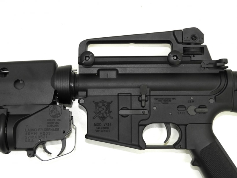 レシーバー部分が主にVFC VR16 Classic M200のパーツでこれ以外が主にArrow Dynamic製M16A3のパーツでできている。破損ではないらしいが、レシーバーとバレルの接続部がゆるくなっている。