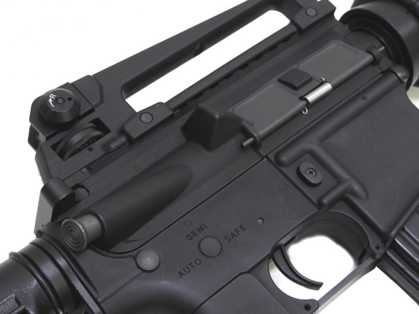 発射後のBB弾や排出されたカートは跳ね返る事があるので、必ず充分な強度のあるゴーグルを着用してください。