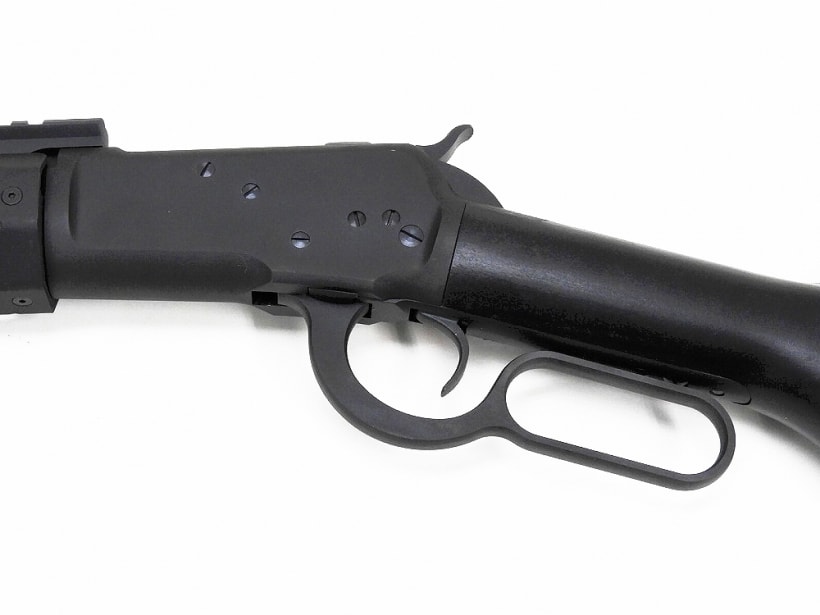 西部開拓時代に活躍したレバーアクションライフルを、現代戦に必須な光学機器やフラッシュ等を搭載できるようM-LOK対応の金属製ハンドガードと