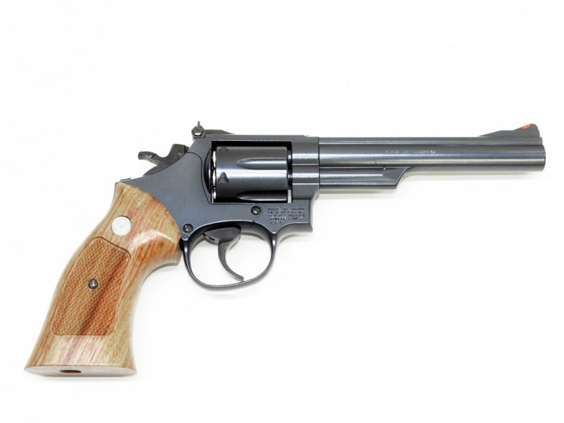 1955年に登場した、S&Wの代表的な回転式拳銃。  当時の主流であった中型で軽量のKフレームを採用し、本来は狩猟用に開発された.357Magnum弾を使用する。使用意図に合わせて2.5、4、6の各サイズバレルがラインナップされており、3インチという珍しいモデルも存在する。  後に『世界最強』というキャッチコピーで全世界にその名を轟かせる“44マグナム”こと、M29の原型となったモデル。幅広い層を対象としていたが特に警察機関で好まれ、4インチモデルは実用本位な外見でアメリカンポリスのシンボルであった。  S&Wのお約束でステンレスモデルはM66と言う。狩猟に使用することを意識してか、リアサイトは前後左右に微調整可能である。  .357Magnumではなく、.38Spl弾(現行の.38Spl+Pでなく、通常の.38Spl弾)仕様の4インチバレルのモデルが、日本の海上保安庁や海警隊(のちの特殊警備隊こと、SST)の執行官護身用に一時期採用された。予備の銃弾を素早く装填するためのスピードローダーも支給されていたようである。